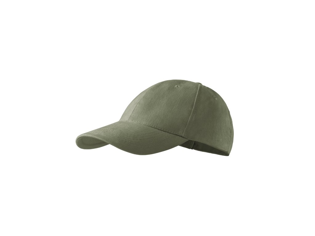 šestipanelový střih vyztužené 2 přední panely prošívaný, lehce prohnutý kšilt obšité větrací otvory potící páska velikost nastavitelná mosazným klipem