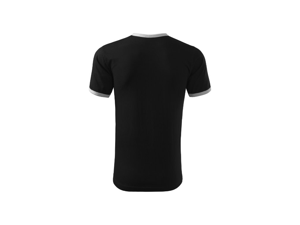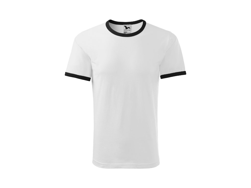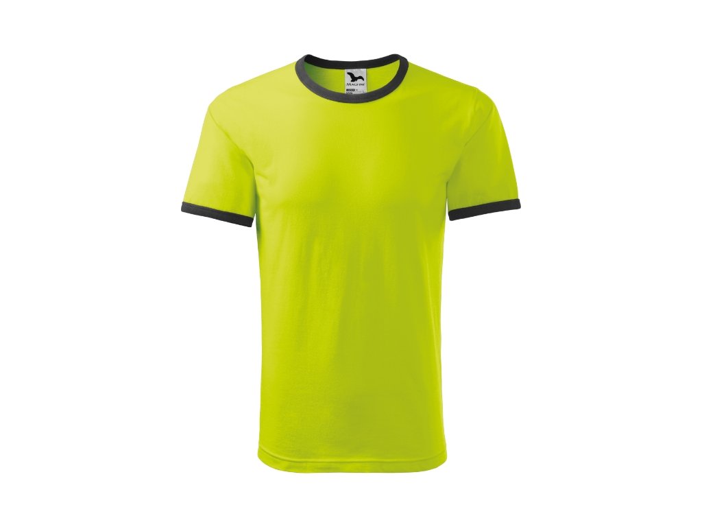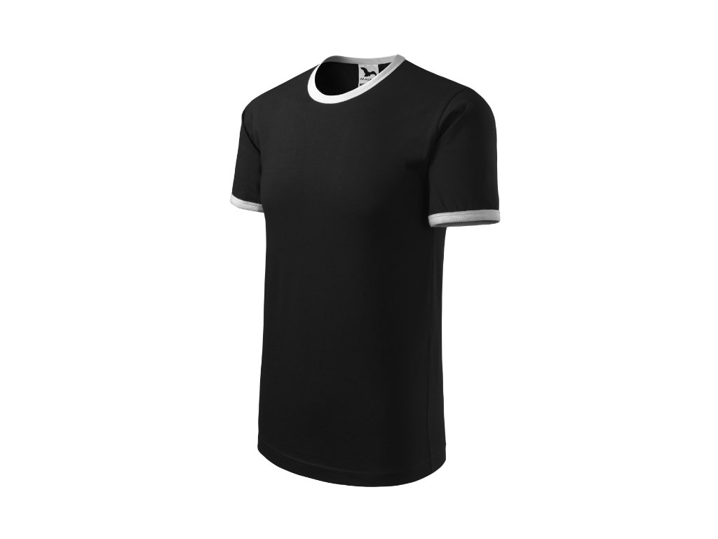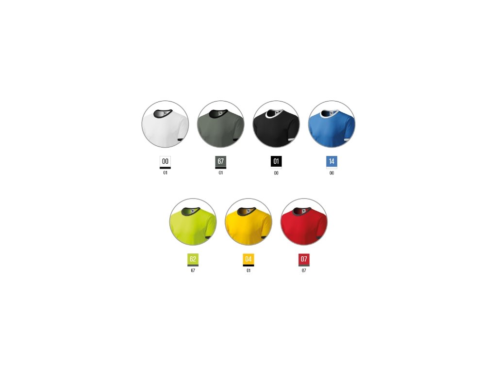 střih s bočními švy průkrčník a rukávy lemovány žebrovým úpletem 1:1 v kontrastní barvě zpevnění ramenních švů páskou bílá/černá, tmavá břidlice/černá, černá/bílá, azurově modrá/bílá, žlutá/černá, červená/tmavá břidlice, limetková/tmavá břidlice