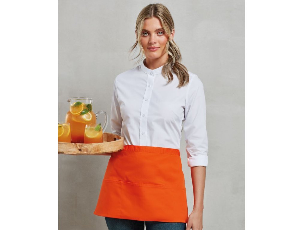 Praktická a stylová krátká zástěra do pasu s kapsou Premier PR 155 „Colours“ je oblíbenou volbou profesionálů v gastronomii, hotelnictví, pohostinství a cateringových službách.
