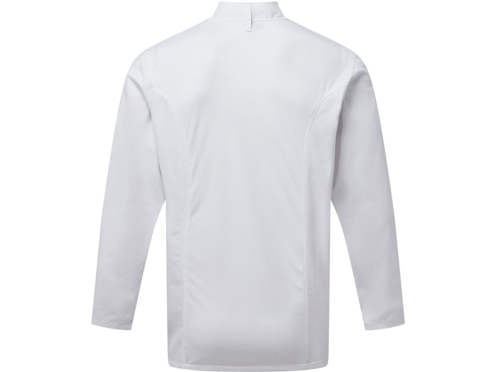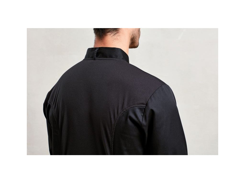 Model PR 903 Coolchecker® je navržen s důrazem na detail, funkčnost a reprezentativní vzhled. Dlouhý rukáv chrání před žárem, zatímco síťovaná záda a prodyšný materiál poskytují ideální cirkulaci vzduchu. Mandarín límeček a elegantní zapínání podtrhují profesionální styl, díky čemuž je tento rondon vhodný nejen do kuchyně, ale i pro show cooking, gastronomické prezentace, hotelové bufety či otevřené kuchyně před hosty.